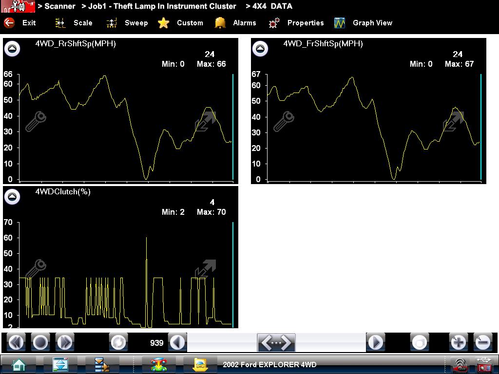 The top image above shows the duty cycle at a steady throttle, and the bottom one shows a split second where the duty cycle dropped to what you would see at idle. This is what was causing the erratic 4×4 clutch PWM readings in Figure 2 and causing the shuddering sensation.